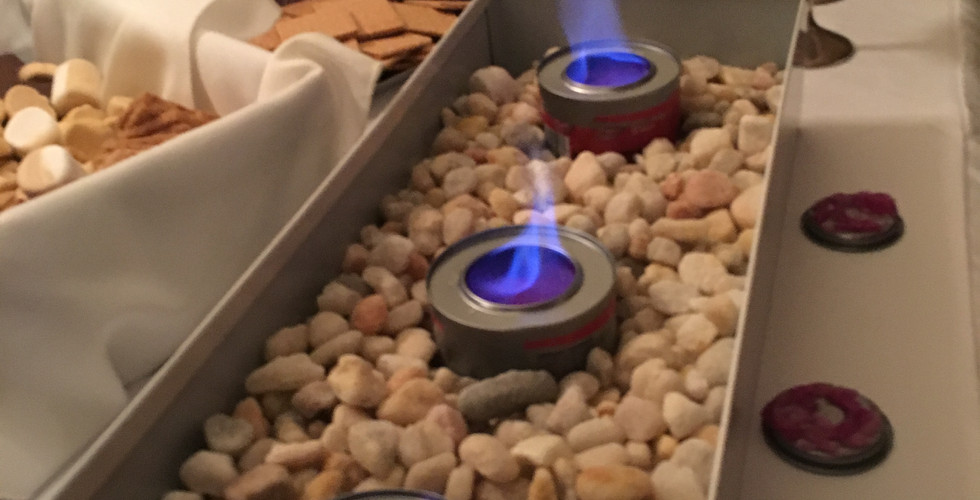 The bride and groom included all the traditional elements of the night: first dances, toasts, bouquet and garter tosses, cake cutting, etc., while keeping things modern with the station style dinner, live artist, and then the late night, indoor s'mores bar that had guests lining up to grab a marshmallow.