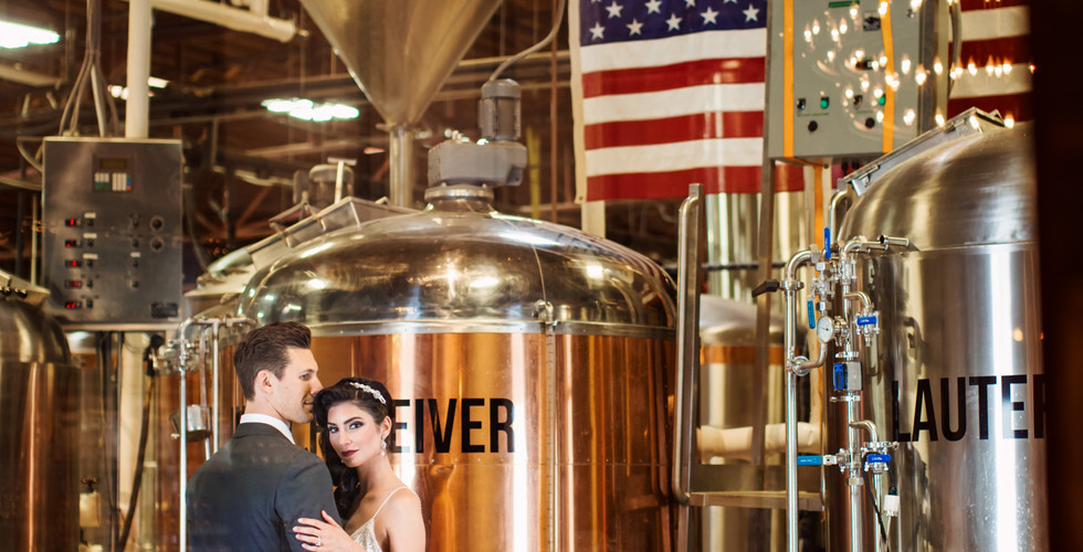 The inspiration for this shoot came from the photographers’ love of the Netflix show Peaky Blinders, paired with the amazing craft brew scene in Charlotte. We wanted to create the fabulous look of the 1920s, paying homage to the more secretive, sultry speakeasy feel as opposed to the more known and used Gatsby/Flapper look. To achieve the darker look and feel, we used deep jewel tones in the linens and florals, featured a whiskey and cigar table, and played off the black walls and wood tones of the venue itself, Sugar Creek Brewery.